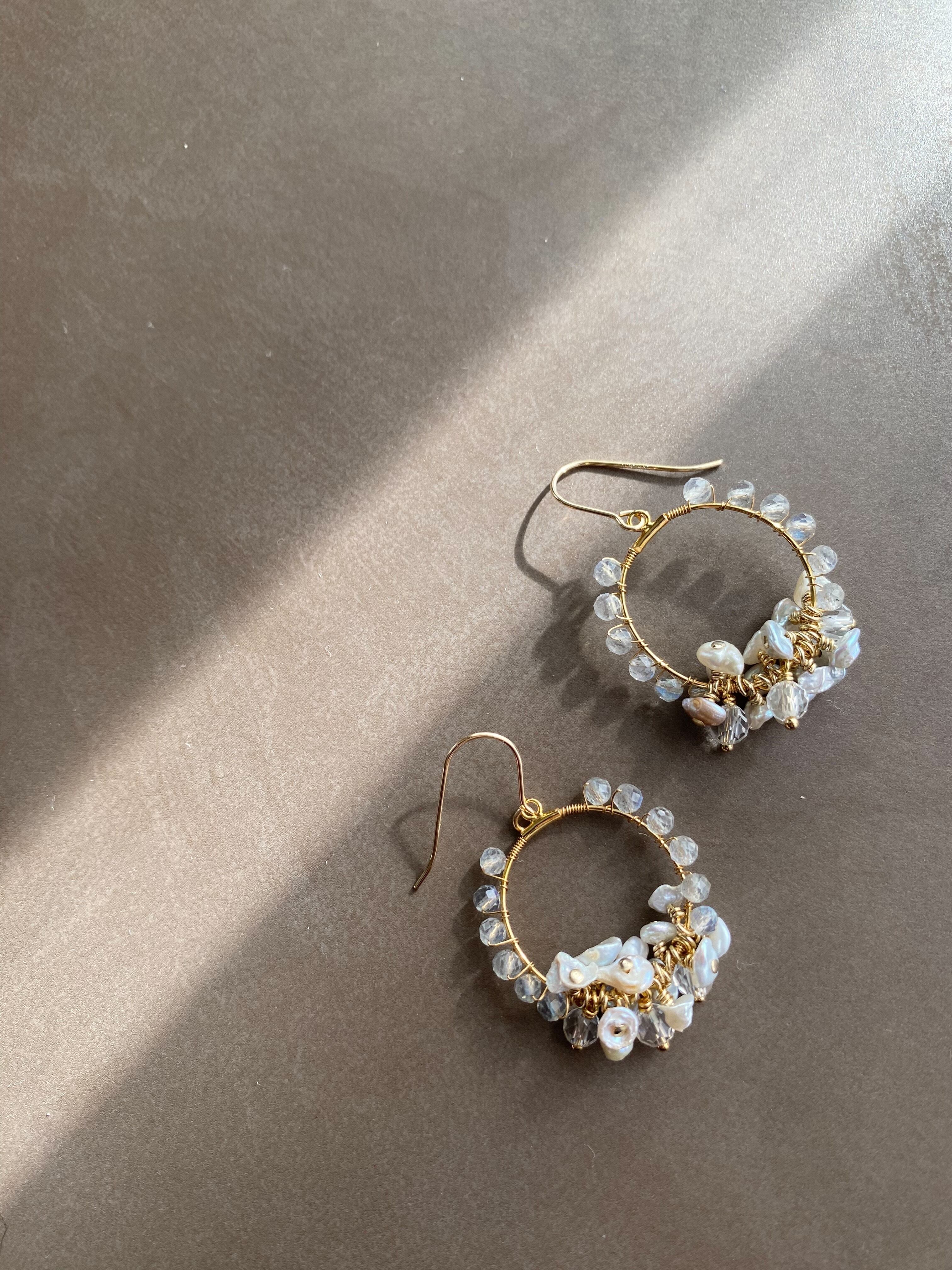 素材/ラブラドライト、淡水パール、クリスタル、K14GFフック